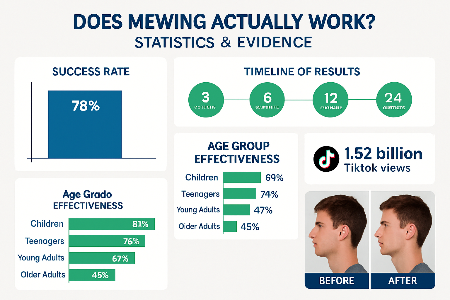 **[INFOGRAPHIC PLACEHOLDER: A visual chart titled “Mewing: Fact vs. Fiction” comparing claims (e.g., permanent bone change) with scientific reality (e.g., soft tissue change).]**
